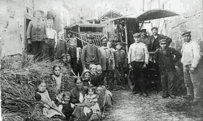 Auf einem Altenstädter Bauernhof 1910 oder 1912 (Dreschmaschine)